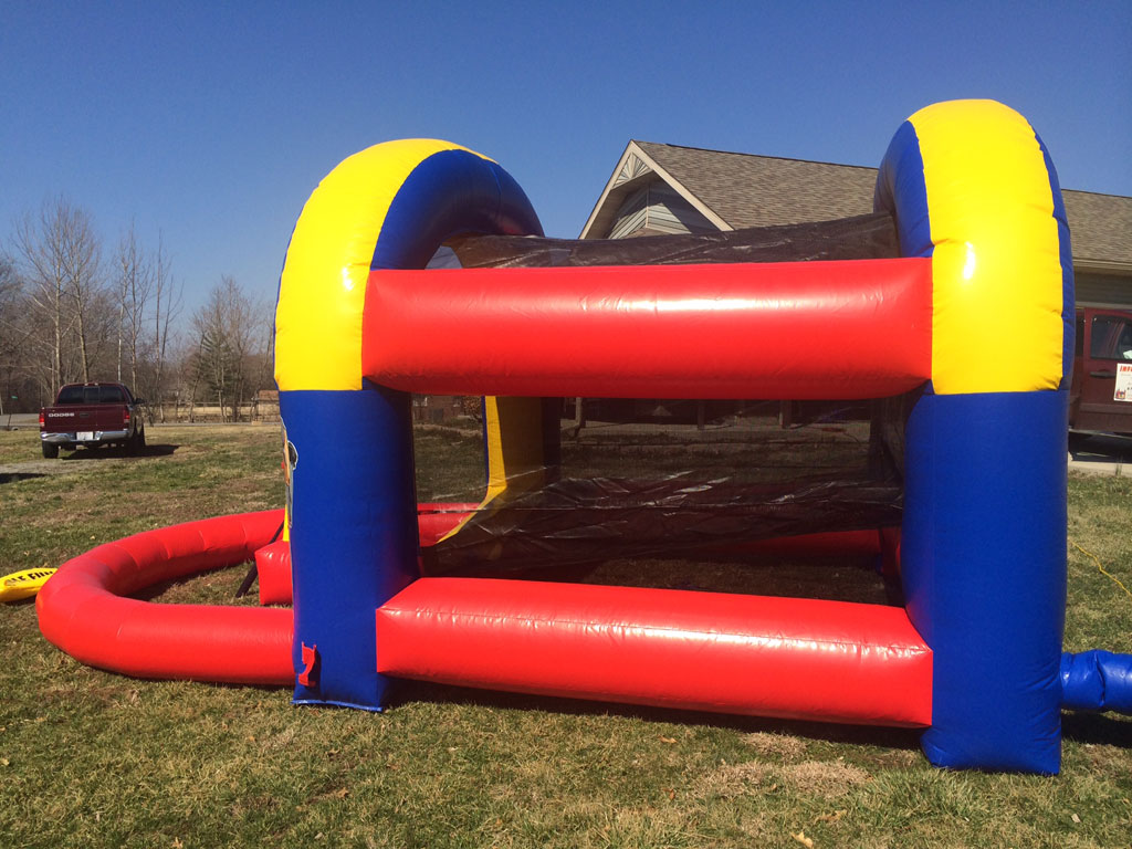 BATTER UP! New in 2014! Our inflatable BATTER UP! invites kids to step-right-up to the plate and take a swing at the plastic ball that floats magically in mid air above the cone. Targets on the back drop indicate SINGLE, DOUBLE, TRIPLE, or HOME RUN – but be careful – you might hit a foul ball or be called OUT! Ideal for any carnival type event or as an add-on to other inflatable rentals.